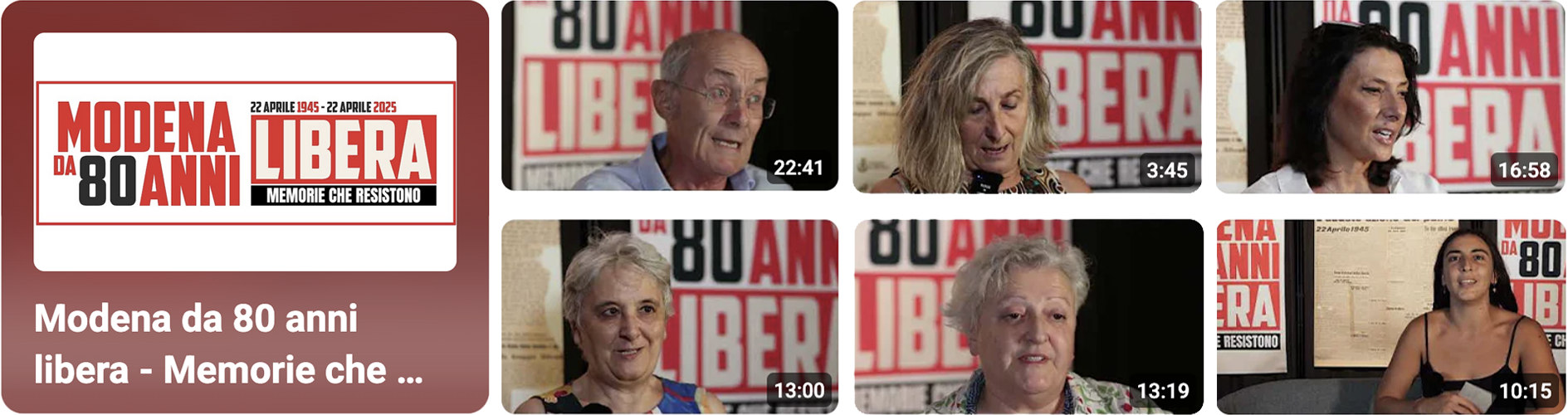 Per l’80° anniversario della Liberazione, il Comitato per la storia e le memorie del Comune di Modena ha promosso il progetto “Modena da 80 anni libera”, coinvolgendo 61 cittadini e cittadine nella raccolta di memorie legate al 1945. Le testimonianze sono state registrate tra luglio e settembre 2025 al Centro Musica, con alcune registrazioni realizzate a domicilio per agevolare i partecipanti più anziani.